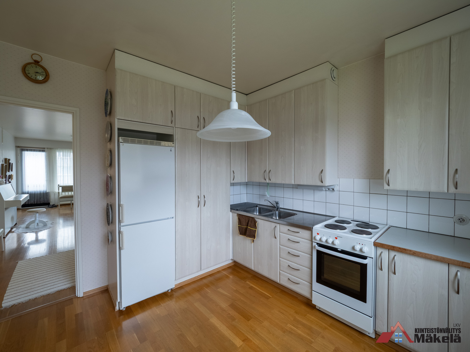 Olohuone: | Seinät: tapetti Lattia: parketti |