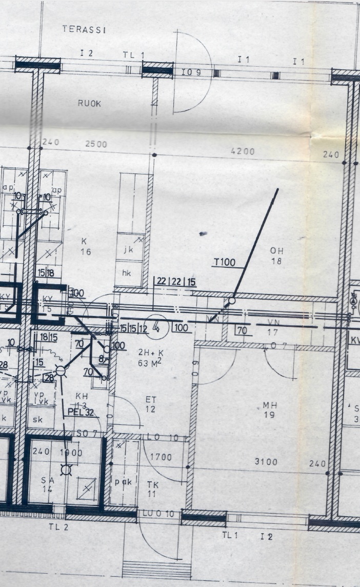 Pesutilat: | Varustus: pesukoneliitäntä, wc-istuin, suihku, peilikaappi, kiinteät valaisimet Seinät: kaakeli Lattia: laatta |